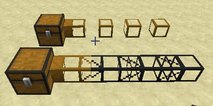 チェストとチェストを二つ離して設置した後、アイテムを送り出すチェスト側に木パイプを取り付けます。